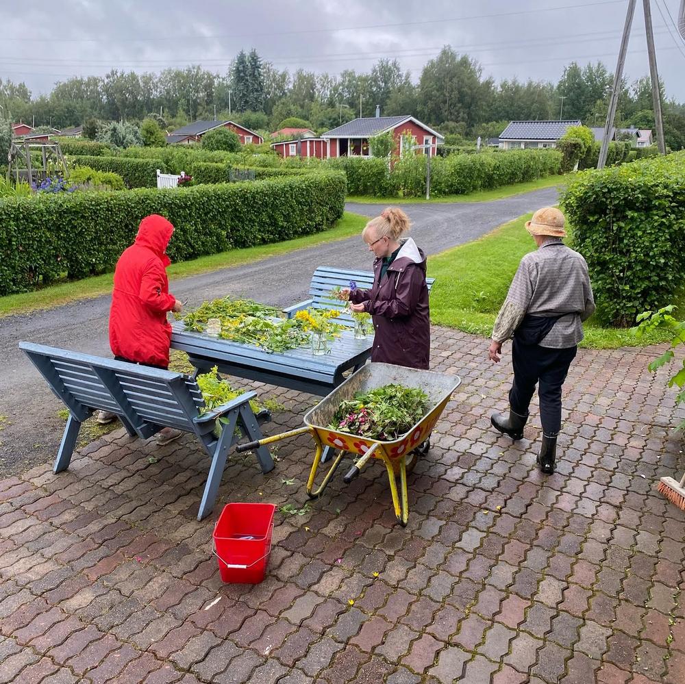 Yhteisö- ja talkootyö on paitsi tärkeää alueemme ylläpidon kannalta, myös mukavaa yhdessä oloa ja hyvä tapa oppia tuntemaan muita puutarhureita ja erilaisia käytännön taitoja.