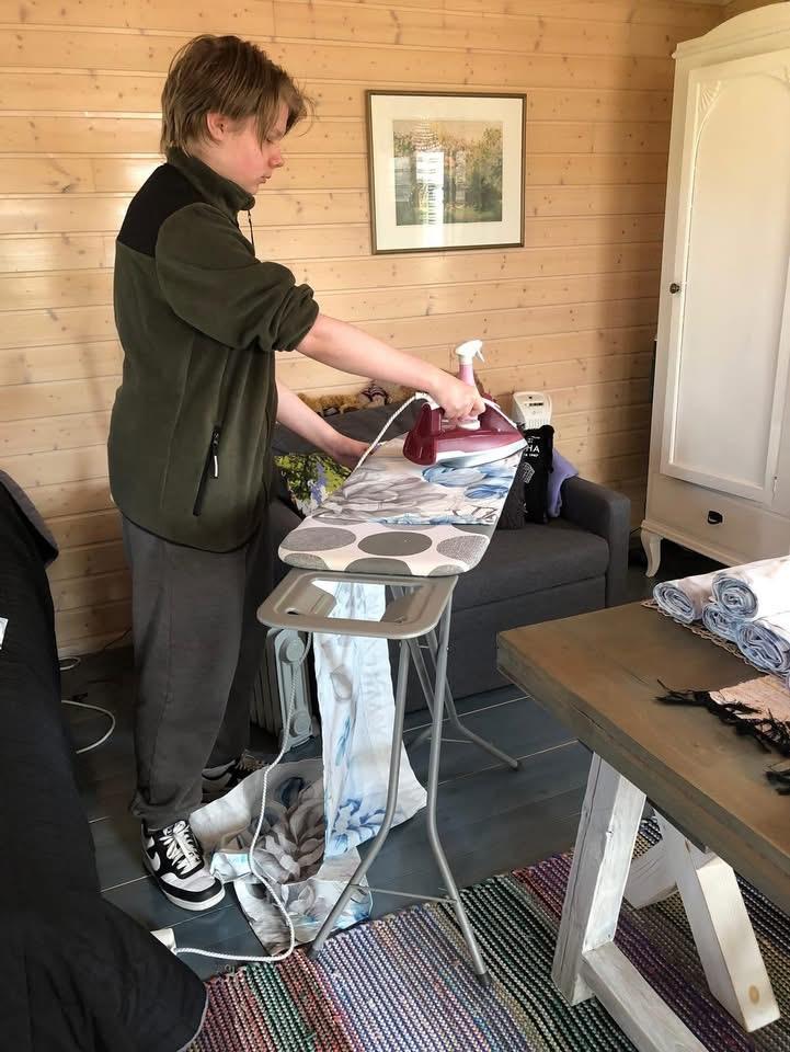 Aloitin varsinaisen työpäivän kerhotalon keittiöllä mm. järjestelemällä astioita ja jatkoin kerhotalolla työskentelyä silittämällä kerhotalon verhokappoja. Siirtolapuutarhalla järjestettiin juhannusjuhlat 20.6.25, joten edellisenä iltana tein arpalippuja 500 kappaletta. Olin juhannusjuhlissa myymässä tekemiäni arpoja, joita meni todella hyvin kaupaksi.