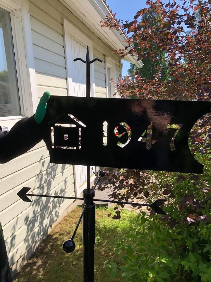 Kerhotalon katolla oleva tuuliviiri kaipasi hieman hiomista ja uutta maalipintaa, joten veimme tuuliviirin hallille siistittäväksi. Olen aina tykännyt maalaamisesta, joten aika kului oikein mukavasti ja viiri on kuin uusi.
